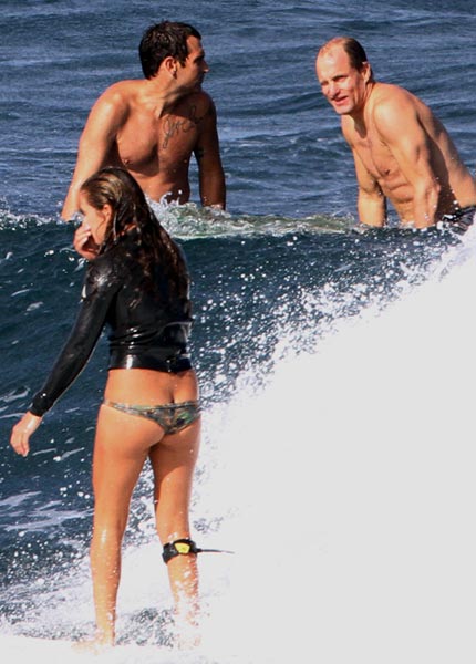 Nyt Woody on kuvattu Miami Beachin pohjoisrannalla seuraavan elokuvansa kuvaustauolla. Harrelson ei tyytynyt ainoastaan makoilemaan ja uimaan, sillä hän yllätti silminnäkijät – ja erityisesti naiset – esittelemällä näyttäviä surffaustaitojaan.