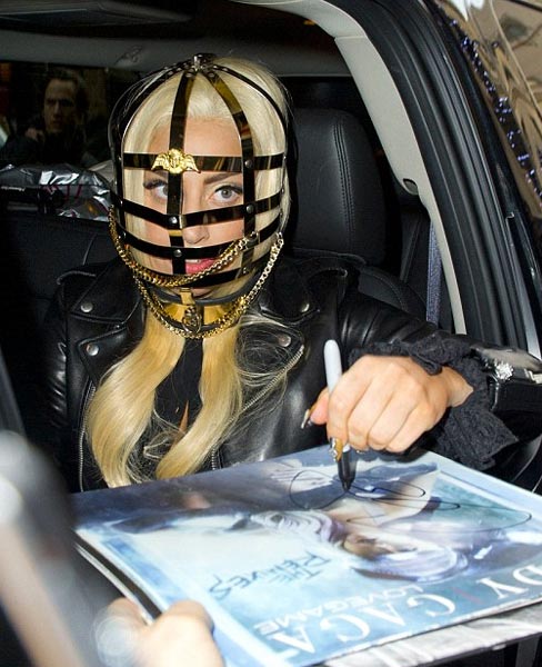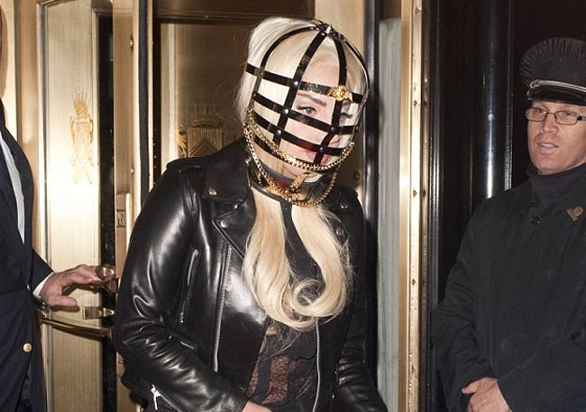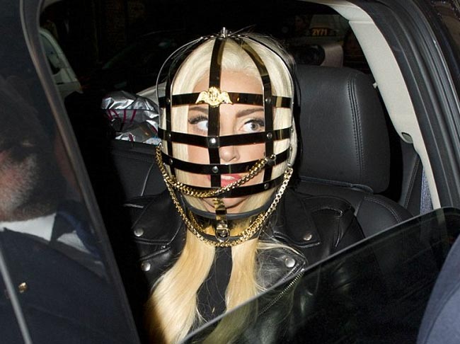 Erikoisista vaatevalinnoistaan tunnettu poptähti on nyt onnistunut jälleen yllättämään paikallaolijat poistuessaan newyorkilaisesta hotellista. Muuten tyyliinsä nähden melko tavanomaisiin vaatteisiin pukeutuneen Lady Gagan pään ympärillä nähtiin nimittäin bondage-henkinen, metallista häkkiä muistuttavassa päähine, jota koristivat kultaiset ketjut ja enkelikuviot.
