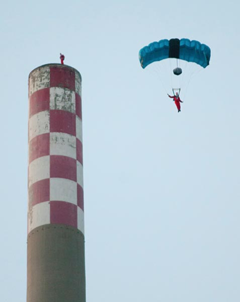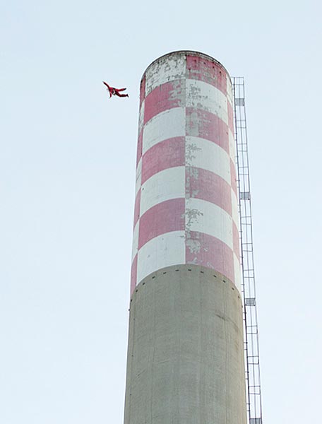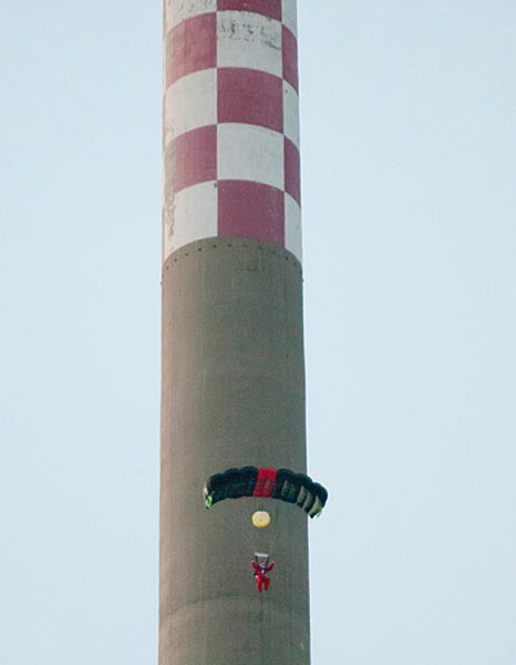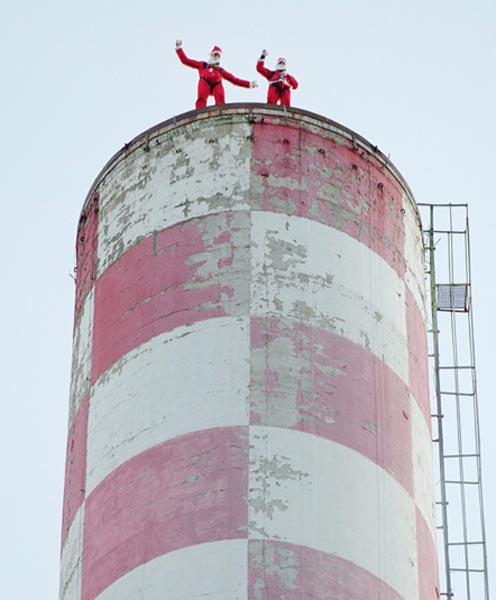 Nyt valokuvissa nähdään kuinka Sveitsissä sijaitsevan Vouvryn kaupungin entisen sähkövoimalan korkeaan savupiippuun kiipesi Joulupukki apulaisensa kanssa. Ylös päästyään molemmat hyppäsivät savupiipusta BASE-hypyn ja onnistuivat pääsemään ehjin nahoin alas saakka. Todellisuudessa miehet olivat ammattilaisia stuntmiehiä.