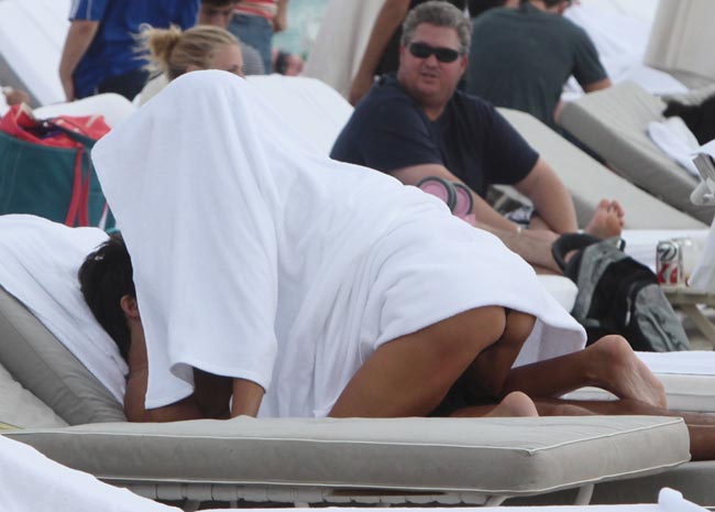Floridan Miami Beachilla parhaillaan joulua viettävä Claudia Galanti on nyt kuvattu rannalla nauttimassa laatuaikaa aviomiehensä Arnaud Mimranin kanssa hieman turhankin läheisesti. Pariskunta nimittäin piiloutui valkoisen pyyhkeen alle jakamaan hellyyttä toisilleen.