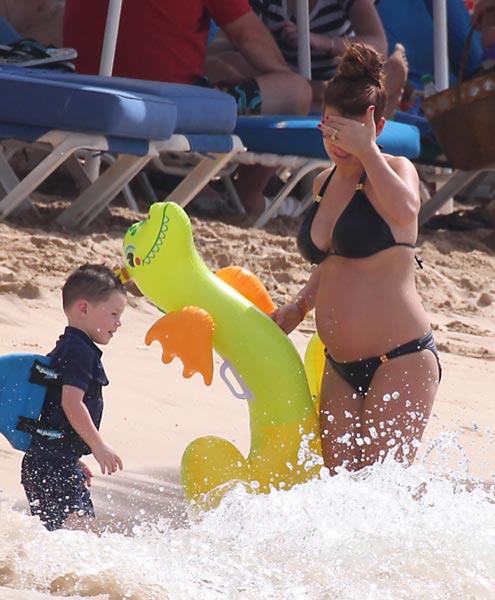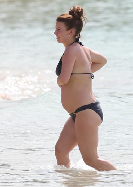 Lapissa pari kuukautta sitten Kai-poikansa kanssa lomaillut Coleen Rooney on ollut jo jonkin aikaa raskaushuhujen kohteena, ja tänään Barbadoksella ikuistetut bikinikuvat vahvistivat osaltaan raskauden olevan totta.