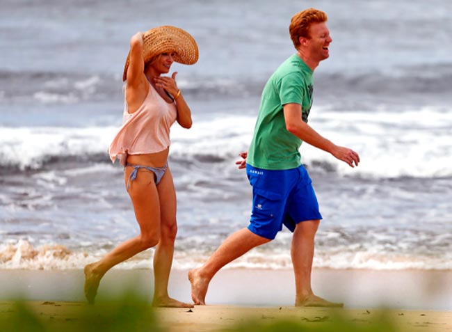 Nyt Pamela Anderson on viettämässä joululomaansa Havaijilla Mauin saarella. Neitokainen kuvattiin tänään päiväkävelyllä rannalla yhdessä miespuolisen seuralaisen kanssa. Neitokainen oli verhonnut ylävartalonsa paitaan, mutta jalassaan hänellä oli vain bikinien alaosa.