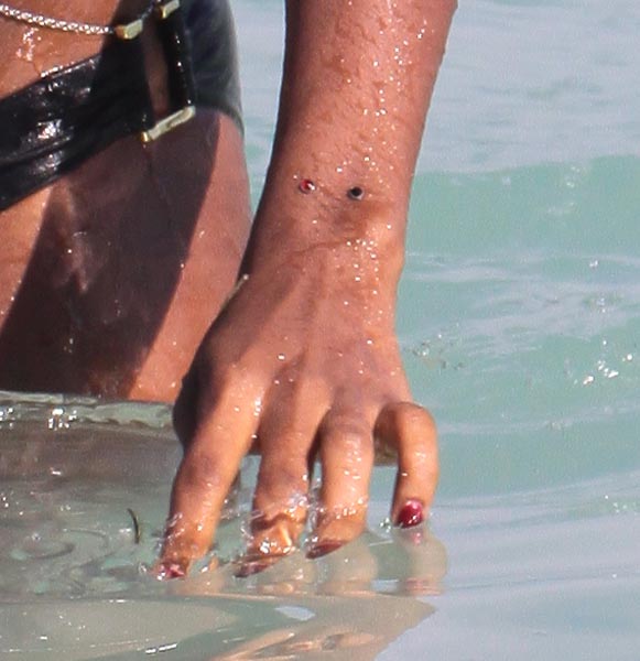 Nyt 24-vuotias Alexandra Burke on ihmetyttänyt paljastamalla rannelävistyksensä. Miami Beachilla parhaillaan lomaileva neitokainen ikuistettiin bikineissä, mutta vartaloa enemmän huomio on kuitenkin kiinnittynyt hänen vasemmassa kädessään oleviin lävistyksiin.