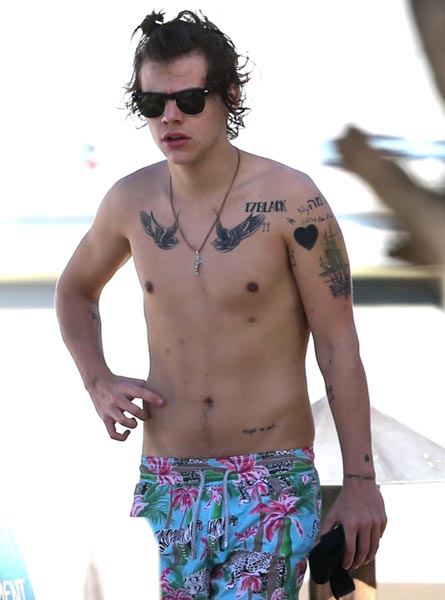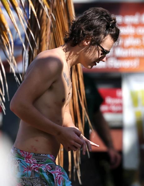 Nyt salskea poplaulaja on bongattu rantalomalta Karibialta, jossa Harry vietti aikaa mielitiettynsä kanssa. Otoksissa ihailijat pääsevät näkemään myös paidattoman Stylesin rantakunnon. Paparazzit paljastivat kuvillaan myös 18-vuotiaan laulajan selkäfinnit.