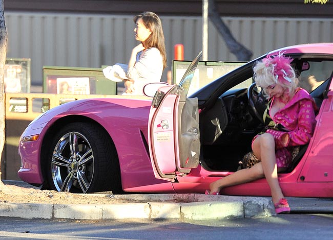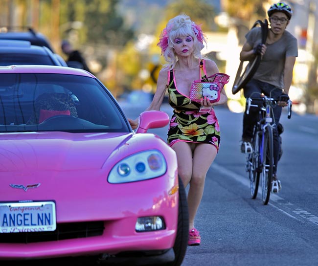 1980-luvulla miljoonien miesten seksisymboliksi noussut Angelyne kuvattiin nyt autoilemassa Silverlaken alueella. Neitokaisen menopeli on samaa sarjaa hänen oman ulkonäkönsä ja vaatetuksensa kanssa, eli tietenkin vaaleanpunainen.