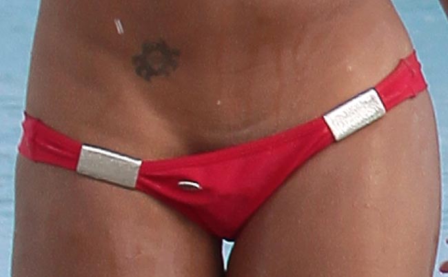 Precious Muir poseerasi äskettäin rusketustuotteiden mainoskuvissa yhdessä italialaisen mallikaunottaren Claudia Romanin kanssa. Tumma neitokainen bongattiin kuvausten lomassa pulikoimassa meressä Floridan Miami Beachilla. Neitokaisen punaisten bikinien alaosa pysyi juuri ja juuri hänen yllään neitokaisen noustua merestä rannalle.