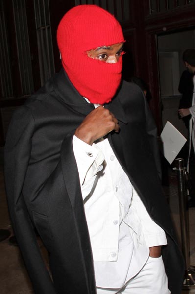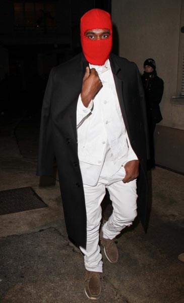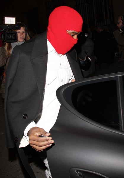 Lapsensa syntymää parhaillaan odottelevat Kanye ja Kim osallistuivat äskettäin Pariisissa järjestetyille muotiviikoille. Kanye West herätti rakkauden kaupungissa huomiota erikoisella asustevalinnallaan. Valkoisen puvun ja mustan takin lisäksi artisti oli nimittäin sonnustautunut kasvot peittävään, punaiseen kommandopipoon. Se saikin Kanyen muistuttamaan enemmän gangstarap-artistia tai ninjaa kuin Kim Kardashianin poikaystävää. Aika näyttää tuleeko moisesta asusta muoti-ilmiö.