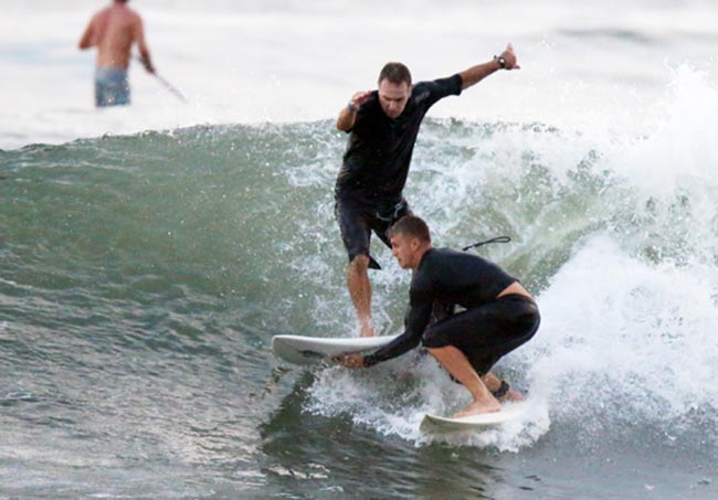 Nyt paparazzi on saanut ikuistettua hyvin poikkeuksellisen tilanteen, jossa maailman parhaisiin lukeutuva ammattisurffaaja Julian Wilson oli saada harrastelijan niskaansa aallonharjalla. Wilson suivaantui tilanteesta ja kaatoi harrastelijan laudan pienen kamppailun jälkeen.