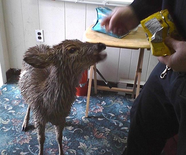 Pelastajat käärivät henkensä säilyttäneen peuran vilttiin. Pelastamisen jälkeen koitti vielä ihastuttava hetki, kun pienokaisen perheenjäsenet saapuivat paikalle ja ryhtyivät nuolemaan kylmissään olevaa vasaa. Poliiseilla ei ollut pienokaiselle juuri tarjottavaa, joten he syöttivät sille ensi hätään popcornia. Poliisilaitos julkaisi kuvia tapauksesta poliisilaitoksen verkkosivuilla.
