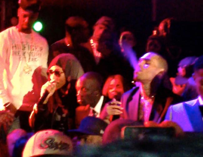 Eilen Rihanna ja poikaystävä Chris Brown kuvattiin Grammy-gaalan jatkobileissä. Silminnäkijöiden havaintojen mukaan he polttivat marijuanasätkää Hollywoodissa sijaitsevalla The Supperclub -klubilla. TMZ-viihdelehden mukaan ”koko paikka oli täynnä jointtisavua”.