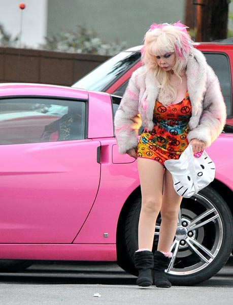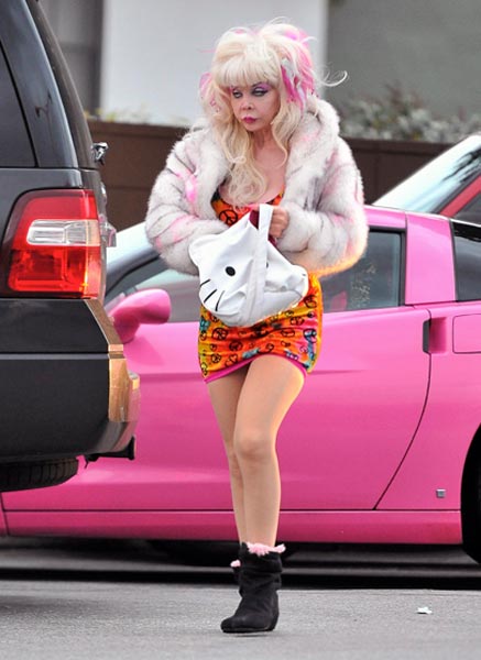 1980-luvulla miljoonien miesten seksisymboliksi noussut Angelyne on nyt ikuistettu Beverly Hillsissä, jonne hän saapui vaaleanpunaisella urheiluautollaan. Neitokainen kiinnitti katseet räväkällä pukeutumisellaan.