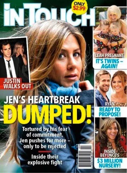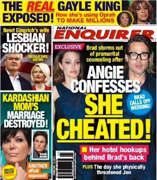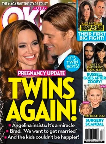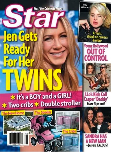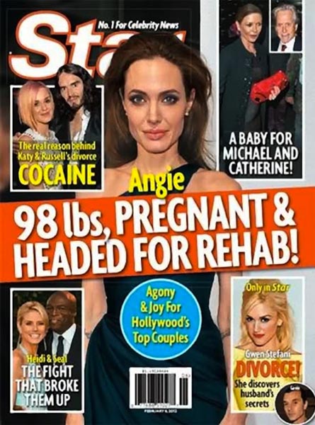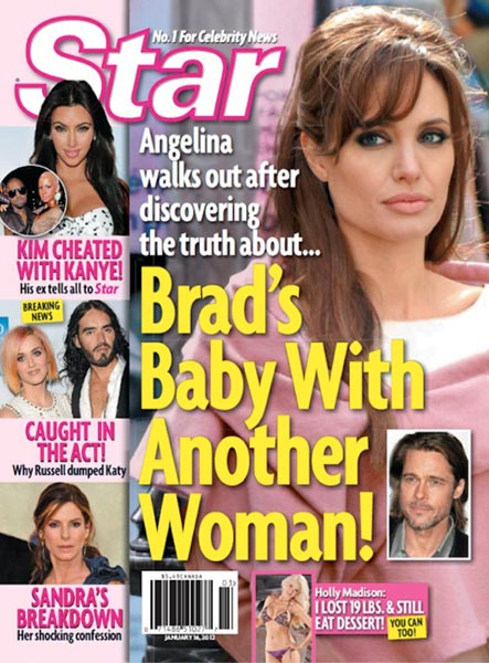 Nyt verkossa on niitetty yhteen viime vuoden absurdeimmat uutiskohut, jotka osoittautuivat lopulta vääriksi. Mukana on muun muassa Star-lehden kansikuvia, joissa lehti julistaa Frendit-televisiosarjan tähden Jennifer Anistonin olevan raskaana ja helmikuun 2012 Star-lehti, jossa se julisti ”yksinoikeudella” Brad Pittin ja Angelina Jolien menevän naimisiin.