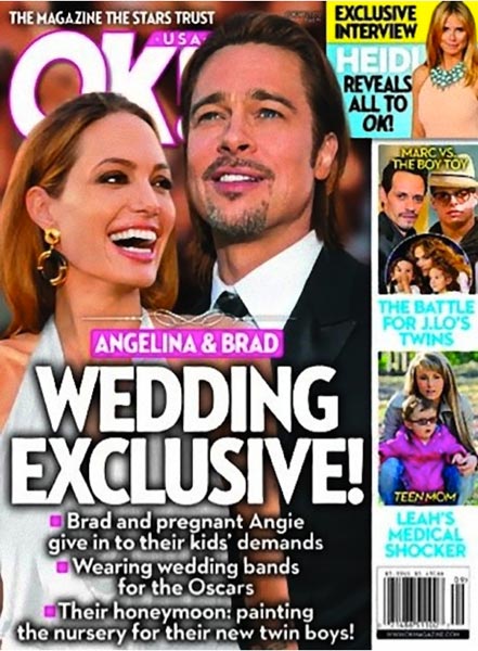 OK!-lehden mukaan Kim Kardashian olisi tehnyt salaisen adoption maaliskuussa, mutta kyseinen väite osoittautui pian valheeksi. Kansikuvassa Kardashianin väitetään maksaneen adoptiosta miljoona dollaria. Eräässä kansikuvassa puolestaan väitetään, että Twilight-tähdet Robert Pattinson ja Kristen Stewart olisivat menneet naimisiin kesäkuussa.