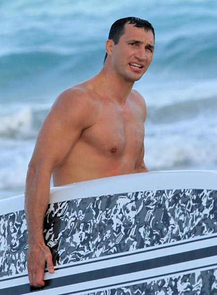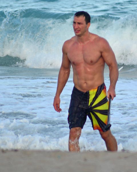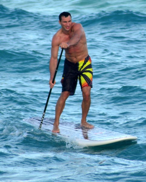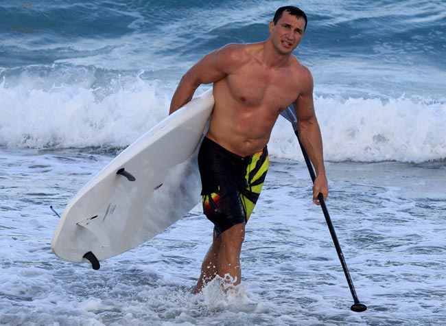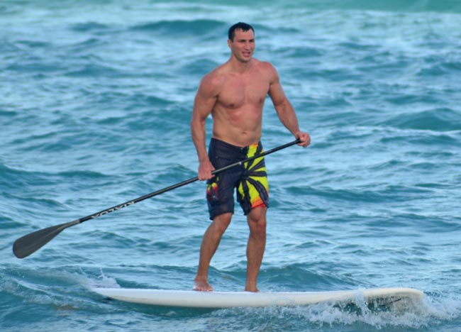 Nyt 36-vuotias nyrkkeilijäkomistus on bongattu melomassa meressä lähellä Etelä-Floridan kotiaan. Wladimir tarjosi rannalla käyskenteleville neitokaisille myös silmänruokaa, sillä hänen kroppansa lienee eräs urheilumaailman näyttävimmistä ja kovakuntoisimmista.