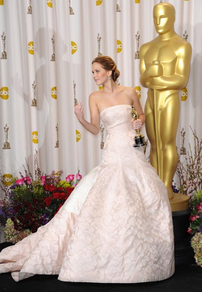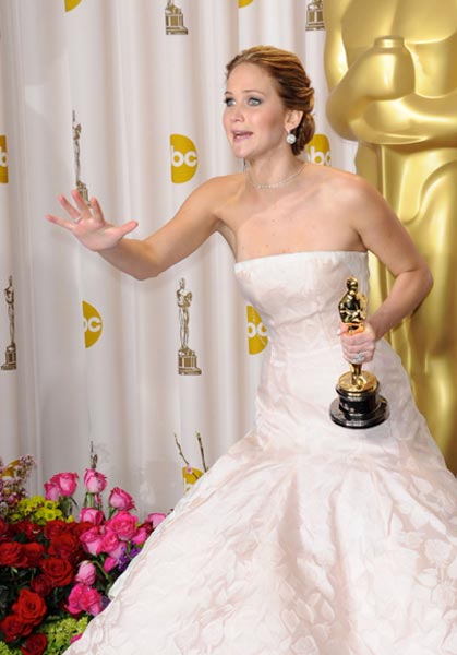 Nälkäpeli-hittielokuvan päätähti Jennifer Lawrence on noussut nopeasti yhdeksi Hollywoodin halutuimmista naistähdistä. Maailman seksikkäimmäksi naiseksi valittu kaunotar nousi eilen yhdeksi ihailluimmista kaunottarista Oscar-gaalassa – erityisesti voitettuaan oman pystin.