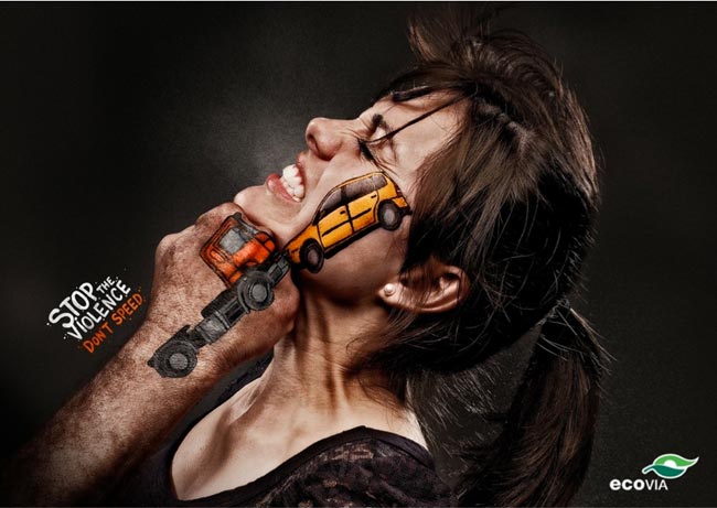 Brasilialainen tieliikenteen turvallisuuteen ja teiden ylläpitoon keskittyvä Ecovia on lanseerannut kampanjan, jossa liikenneturvallisuus on yhdistetty näyttävästi väkivaltaan.