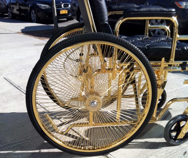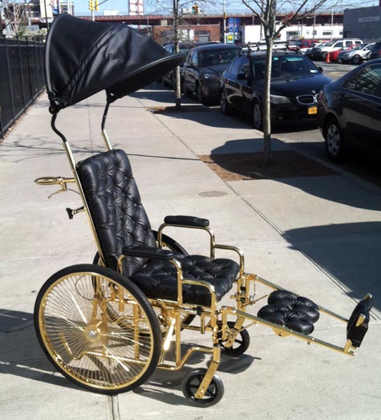 Supertähti ei tietenkään suostu liikkumaan millään tavallisella menopelillä, ja siksi hän onkin nyt saanut käyttöön tilaamansa pöyrätuolien Rolls-Roycen. Luksusmerkki Mordekain Ken Borochov suunnitteli hänelle pyörätuolin, joka on kullattu 24 karaatin kullalla ja jossa on nahkapenkit sekä nahkainen katto.