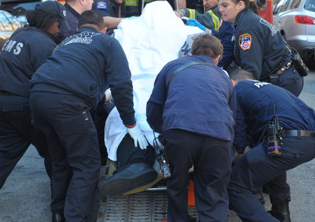 Lopulta tarvittiin peräti kymmenen ihmistä miehen saamiseksi ambulanssiin. Ohessa pari kuvaa vielä varsin erikoisesta tilanteesta, joka tosin alkaa olla Yhdysvalloissa pian arkipäivää.