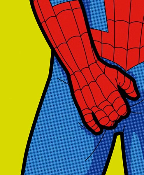 Yhdessä kuvassa näytetään Batmanin ja Robinin välisestä, jopa mielipiteitä herättävästä ystävyydestä, jossa Lepakkomies suutelee Ihmepoikaa. Yhdessä julisteessa Hämähäkkimies raapii jalkoväliään. Julisteita voi ostaa Firebox-verkkokaupasta reilulla kahdellakymmenellä eurolla.