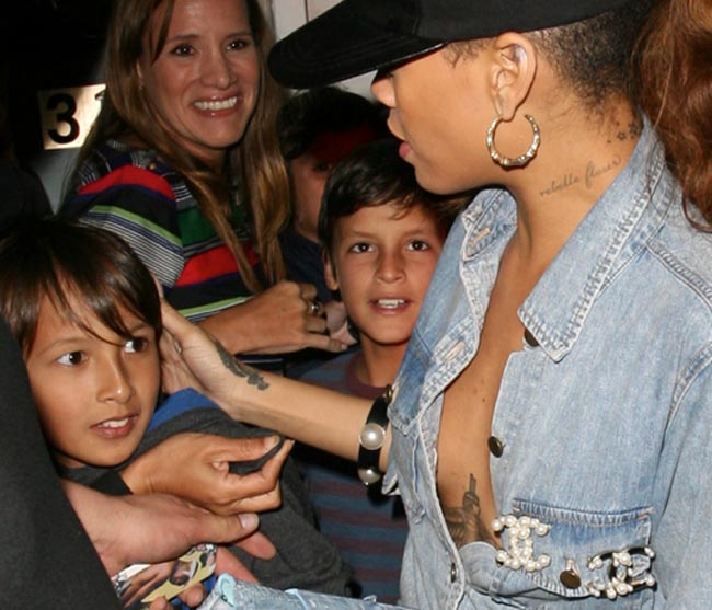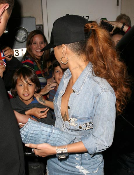Viime viikolla lääkäri suositteli, että Rihanna vähentäisi juhlimistaan, jotta tämän esiintymiskunto pysyisi hyvänä. Poptähdellä on nykyisin aikaa kiertää muun muassa jakamassa nimikirjoituksia, joita hän onkin nyt jakanut Beverly Hillsissä. Hän oli jättänyt rintaliivinsä kotiin, ja erään pikkupojan katse oli näkemisen arvoinen.