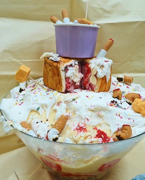 Kaikki kakut ovat kuitenkin syötäviä herkkuja, vaikka niiden ulkonäkö onkin kuin suoraan Frankensteinin hirviön laboratoriosta. Kakut ovat hämmästyttävän aidonnäköisiä ja ne ovat peräisin leipomosta, jossa yleensä tehdään henkeäsalpaavan kauniita ja herkkiä kakkuluomuksia.