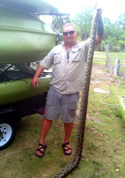 Oppaat Tommy Owen ja Warron Wortman yllättivät turistit hyökkäämällä jättiläiskäärmeen kimppuun paljain käsin kuin Tarzan ikään. Turisteilla oli luonnollisesti kamerat valmiina, joten he ikuistivat kuviin myös oppaiden ja käärmeen välisen kamppailun. Käärme menetti rytäkässä henkensä.