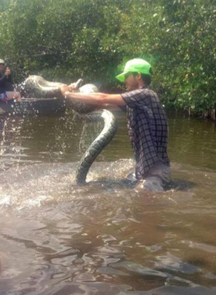 Noin kolmemetrinen burmanpython hyökkäsi, kun turistiopas oli ryhmineen tutustumassa suistoalueeseen kanooteilla. Toinen oppaista yritti siirtää käärmettä pois seurueen kanoottien tieltä, kun käärme päättikin iskeä ja tarrautui oppaan käteen.