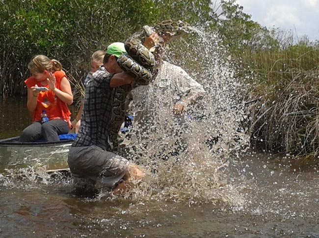 Luonnon helmaan uskaltautuville turisteille sattuu aika ajoin ikäviä tapauksia, kun villieläimet päättävät hyökätä heidän kimppuunsa. Tällä kertaa Floridan Evergladesissa joukko turisteja joutui suurikokoisen pythonkäärmeen iskun kohteeksi.
