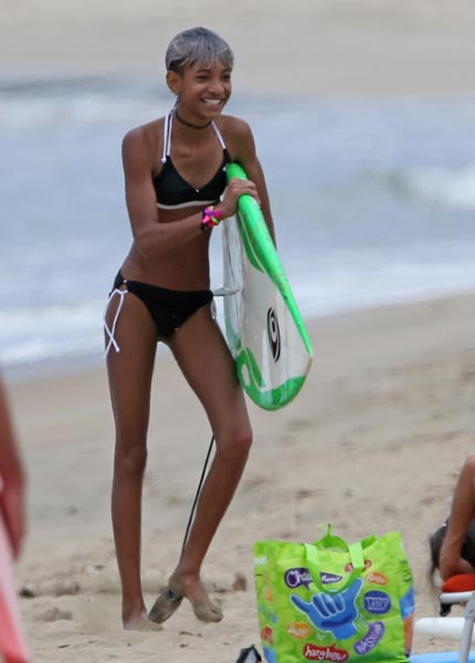 Eilen Jada ja perheen teinitytär Willow kuvattiin nauttimassa rantaelämästä Havaijin maisemissa. Perheenäiti näytti nauttivan täysin rinnoin vedessä ja rannalla kirmailemisesta, kun Willow keskittyi puolestaan samaan aikaan surffaamiseen.