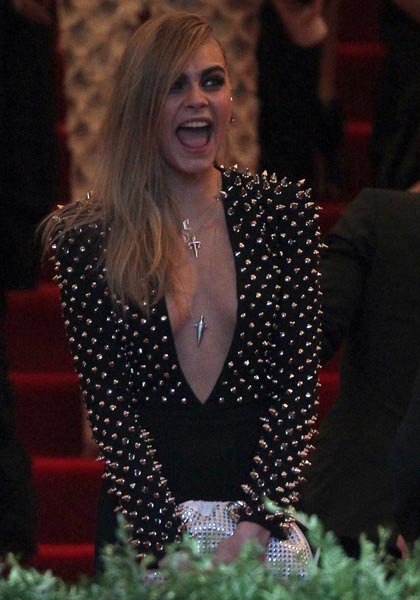Nyt Cara on kuvattu osallistumassa New Yorkissa MET Gala -tapahtumaan, jossa hän vastasi eräästä tilaisuuden näyttävimmistä asuista. Punk-teemaiset bileet antoivat nimittäin tähdille varsin vapaat kädet, ja Cara oli pukeutunut niittejä täynnä olevaan asuun, jonka kohokohta oli varmasti ainakin mieskatsojien mielestä poikkeuksellisen antava kaula-aukko.