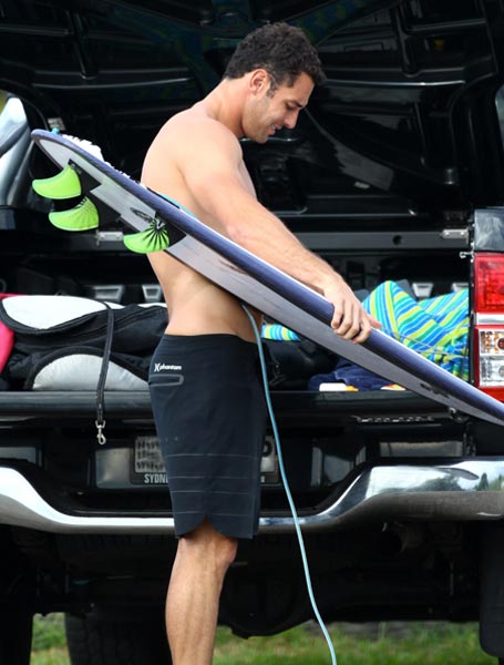 Jake Wall ikuisestiin hiljattain Australian rannikolla, jossa lihaksikas malli viritteli shortsejaan surffausreissua varten. Mallina työskentelevä mies on ainakin kuvista päätellen ilmeisen timmissä kunnossa.