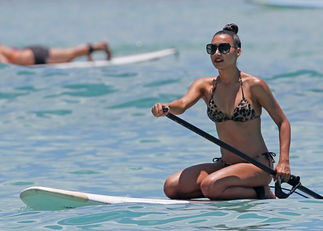 Nyt Naya Rivera on bongattu lomailemassa Havaijilla poikaystävänsä, räppäri Big Seanin kanssa. Kuten useat aurinkoisella saaristolla lomailevat, myös leopardikuvioisiin, niukkoihin bikineihin sonnustautunut 26-vuotias tähti nähtiin kokeilemassa lailelautailua merellä.