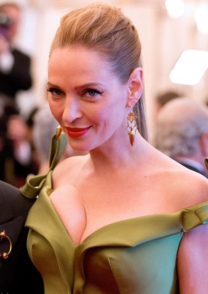 Nyt 43-vuotias Uma on ikuistettu upeassa vihreässä juhlaleningissä New Yorkissa Punk: Chaos To Couture -tapahtumassa. Neitokainen näytti varsin säteilevältä kultaisissa korvakoruissa punattujen huuliensa kanssa. Näyttelijättären asun antava kaula-aukko toi hänen muotonsa esille huomiota herättävästi.