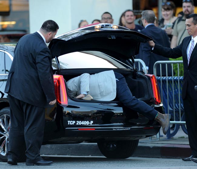 Nyt Zach Galifianakis on kuvattu Kauhea kankkunen 3 -elokuvan ensi-iltajuhlissa, jonne hän saapui hieman poikkeuksellisella tavalla. Näyttelijä saapui nimittäin limusiinilla, mutta ei suinkaan sen matkustamossa. Galifianakis oli nimittäin mennyt sisään auton takakonttiin, josta hän kömpi ylös juhlapaikalle saapuessaan.