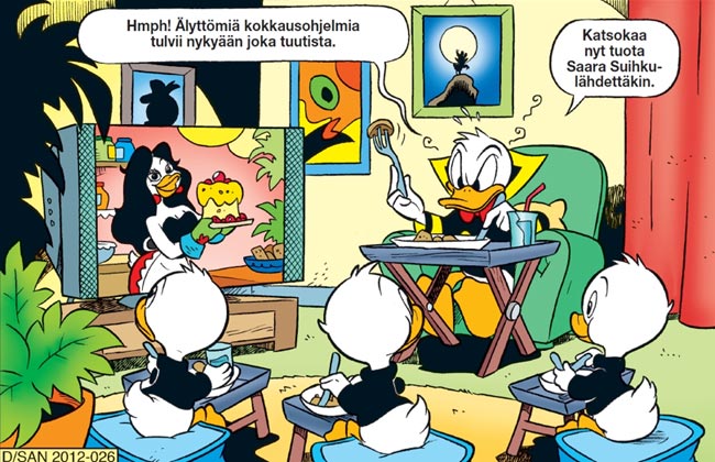 Suomalainen suosikkiartisti J. Karjalainen on kynäillyt tarinan ensi keskiviikkona ilmestyvään Aku Ankka -lehteen. Kokkikahakka-nimisessä tarinassa Aku ja ankanpojat mittelevät ruoanlaittotaidoissa.
