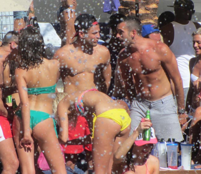 DJ Tieston lisäksi esiintymässä oli myös DJ-tuottaja Mark Wright, joka oli ottanut mukaansa myös näyttävän seurueen ystäviään. VIP-osastolla juhlineen seurueen naispuoliset jäsenet tarjosivat silmänruokaa muillekin allasbileiden vieraille.
