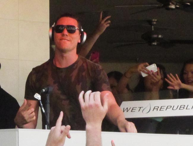 Eilen DJ Tiesto oli kuitenkin keikalla Las Vegasissa, ja siellä maineikkaalla Wet Republic -allasalueella. Allasbileistään tunnetun klubin meno oli suosikkisoittajan keikan aikana villi, ja paparazzit onnistuivat ikuistamaan tunnelmaa kuvinsa.