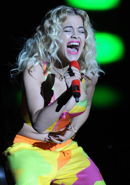 22-vuotias poptähti kuvattiin nyt esiintymässä Iso-Britannian Newsburyssä järjestetyssä Party In The Paddock -tapahtumassa. Rita Ora villitsi yleisöä laulunsa ohella myös ulkoisella olemuksellaan. Neonväriseen paljastavaan toppiin pukeutuneen popkaunottaren kuvia onkin päästy ihailemaan myös viihdelehtien sivuilla.