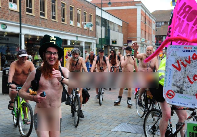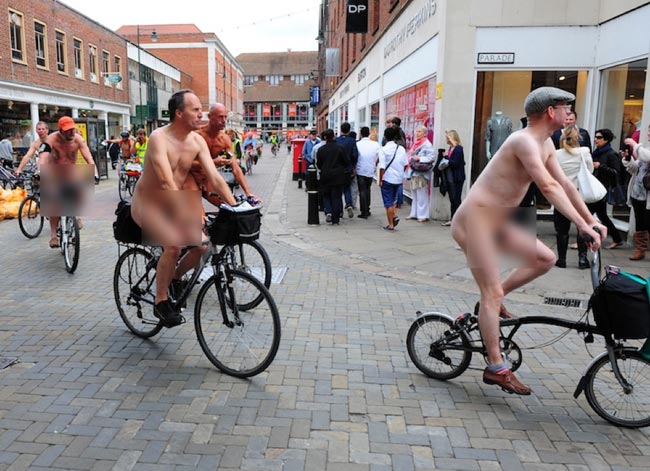 Arviolta noin 50 pyöräilijää järjesti tempauksen, jossa he pyöräilivät Canterburyn keskustan läpi alastomana. Suurin osa osallistujista oli miehiä, mutta myös muutamia naisia oli uskaltautunut mukaan.