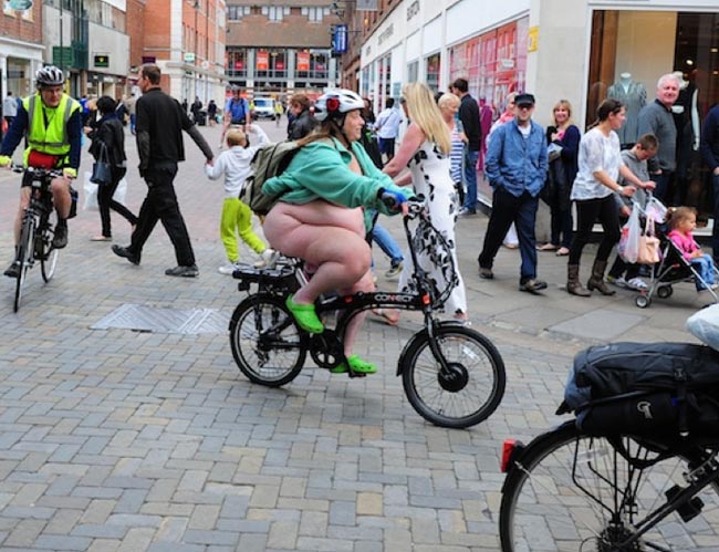 Parin viime viikon aikana ympäri maailmaa on toteutettu jo useita samanlaisia tempauksia, joissa ihmiset riisuvat kaikki vaatteensa ja lähtevät pyöräilemään kaupungille. Nyt tällainen näky on ikuistettu Canterburyssa.