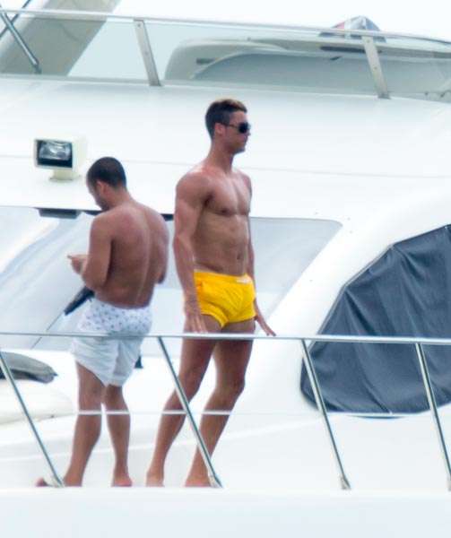 Nyt 28-vuotias Cristiano Ronaldo on ikuistettu lomailemassa ystäviensä kanssa Miami Beachin rantavesillä lipuneella jahdilla. Raamikas komistus oli pukeutunut keltaisiin shortseihin ja nautiskeli olostaan huvijahdin kannella.