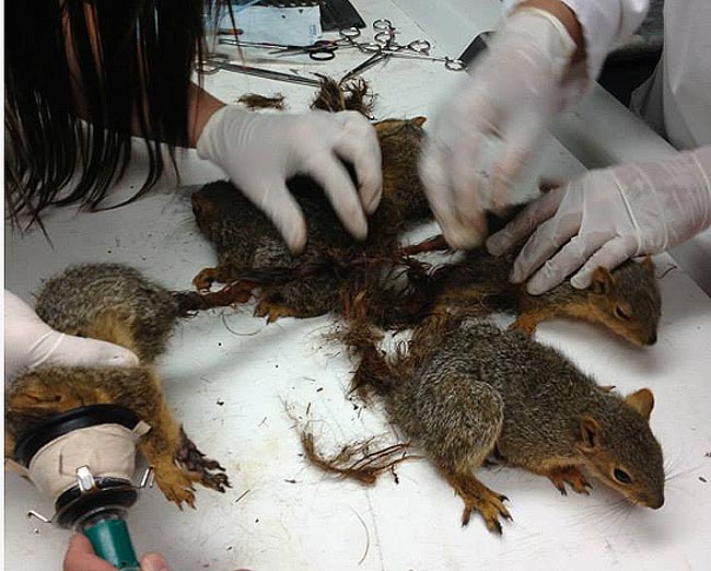 Eläinlääkärille tuodaan joskus erikoisiin pinteisiin joutuneita eläimiä. Nyt oravat ovat joutuneet solmuun temmellyksensä tuoksinnassa. Kanadalaiset eläinlääkärit joutuivat auttamaan kuutta hännistään solmuun mennyttä oravaa, jotka eivät päässeet irti toisistaan.