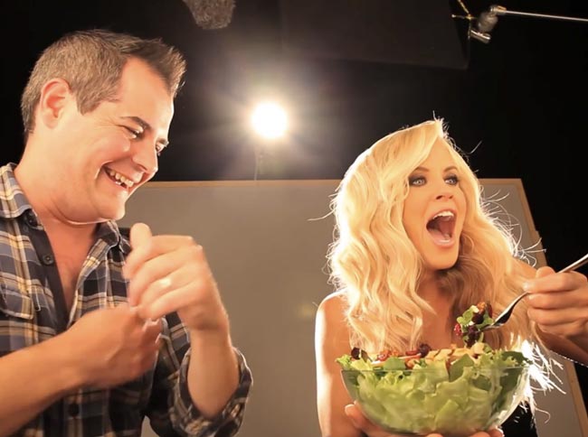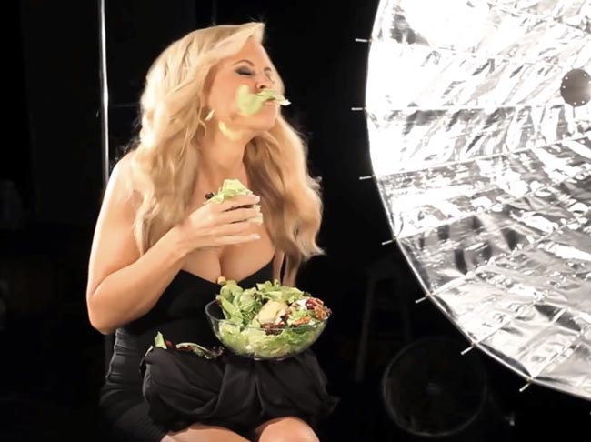 Kyseessä oli osa Carl’s Jr -pikaruokaketjun tuoreinta Forget You’re Eating Salad -kampanjaa, jossa ei seksikkyyttä säästelty. Nyt verkossa on julkaistu kuvamateriaalia mainoskuvausten kulissien takaa. Otoksissa rintava Jenny nähdään muun muassa hassuttelemassa salaatillaan.