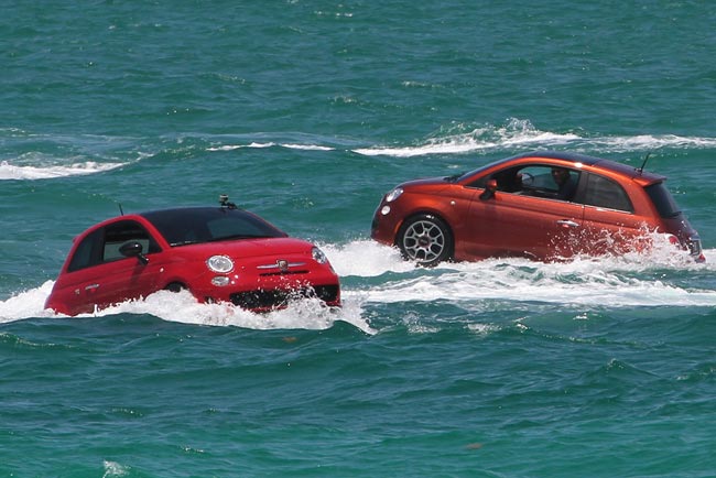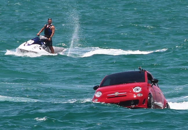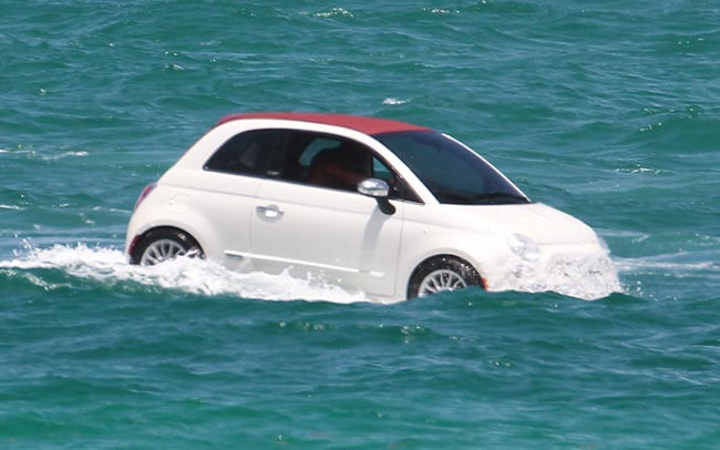 Nyt Miami Beachilla on kuvattu erikoinen näky, joka oli ilmeisesti automerkin mainostempaus. Useat ulkoisesti varsin tavallisen näköistä pienikokoista henkilöautoa suuntasi nimittäin mereen, jossa ne ”kaahailivat” vauhdikkaasti ja näyttävästi.