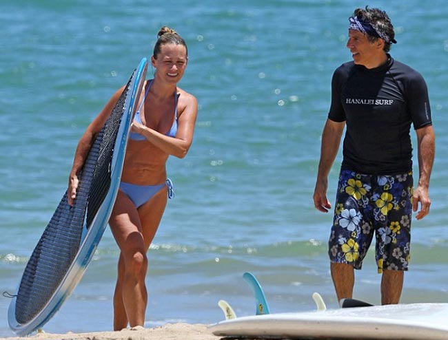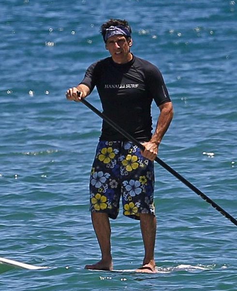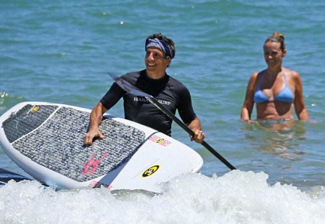 Ben Stiller viettää parhaillaan lomaa Havaijilla yhdessä lastensa ja vaimonsa Christine Taylorin kanssa. Eilen vaimo pääsi testaamaan surffilaudalla melomista bikineissä, mutta Ben keskittyi ottamaan aurinkoa paidattomana.