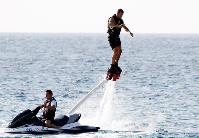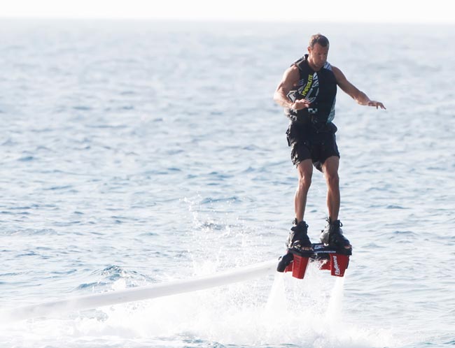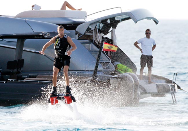 Parhaillaan Vladimir Doronin ja Luo Zilin lomailevat Ibizan rannikolla seilaavalla huvijahdilla, josta he ovat tehneet reissuja myös mantereelle. Päivät eivät kuitenkaan käy pitkäksi, sillä miljardöörillä on tietenkin rahamiehen lelut. Eilen Doronin kuvattiin kokeilemassa vesisuihkuilla toimivaa ”lentolaitetta”, jolla hän pystyy leijailemaan korkealla meren yllä.