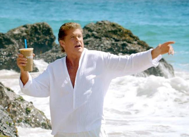 Uusissa Cumberland Farms -kauppaketjun mainoskuvissa The Hoff nähdään varsin villiintyneenä kenties kofeiinin vaikutuksista. Mies kauppaa jääkahvia kuin ammattilainen ikään, ja apuun on riipaistu tietenkin hieman miehistä seksikkyyttä.