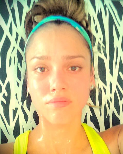 Jessica yrittää tällä hetkellä seitsemän päivän kuntoiluhaastetta, ja julkaisi Instagram-blogissaan itsestään hikisiä treeniotoksia. Meikitön ja luonnonkaunis tähti valitti kuvien yhteydessä, että hän luuli olonsa tuntuvan paremmalta kuntoilun jälkeen – sen sijaan neito olikin väsynyt.