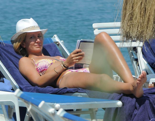 Todellinen Lady! Seurapiirikaunotar nautiskeli bikineissä uimarannalla