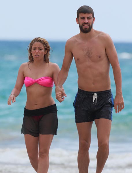 Parhaillaan Shakira ja hänen miesystävänsä Gerard Pique ovat romanttisella lomareissulla Havaijilla, jossa heidät kuvattiin eilen. Pariskunta käveli rannalla ja Shakira innostui välillä ottamaan juoksuaskeleita. Hänen bikinitoppinsa oli samalla kuitenkin pudota.
